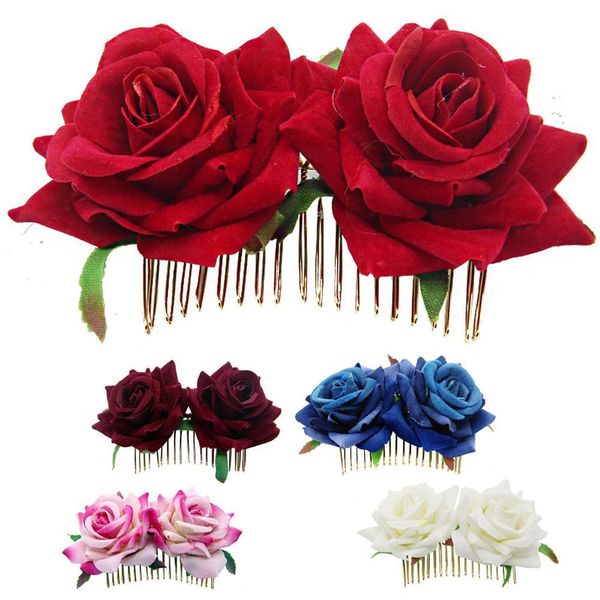 Romantic Fancy Silk Artificial Rose Flower Hair Comb Purple White